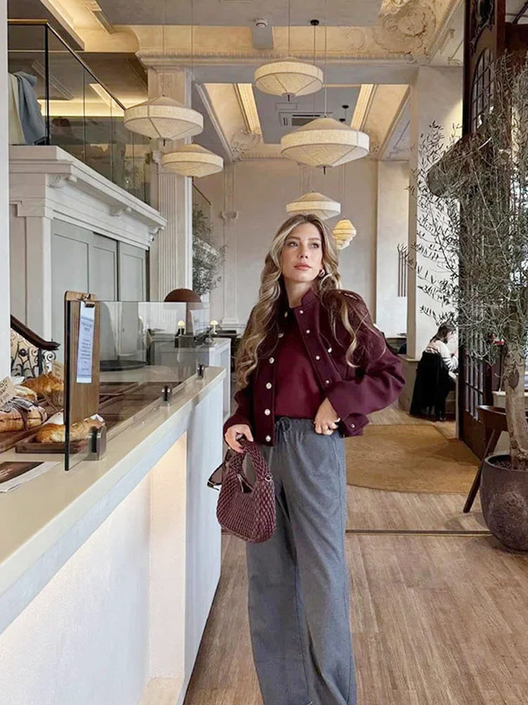 Add a touch of vintage charm to your wardrobe with this double-breasted short jacket. With a chic stand-up collar and a tailored fit, it combines retro aesthetics with modern practicality. The double-breasted design enhances its classic appeal, while the short length makes it suitable for casual or semi-formal occasions.