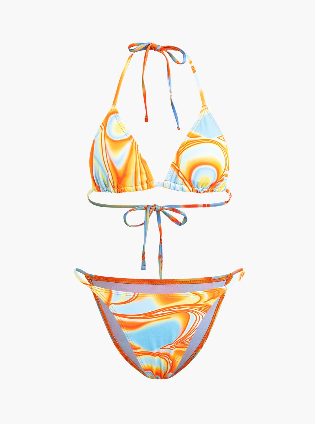 Abstract Print Halter Bikini 3-Piece Sets
